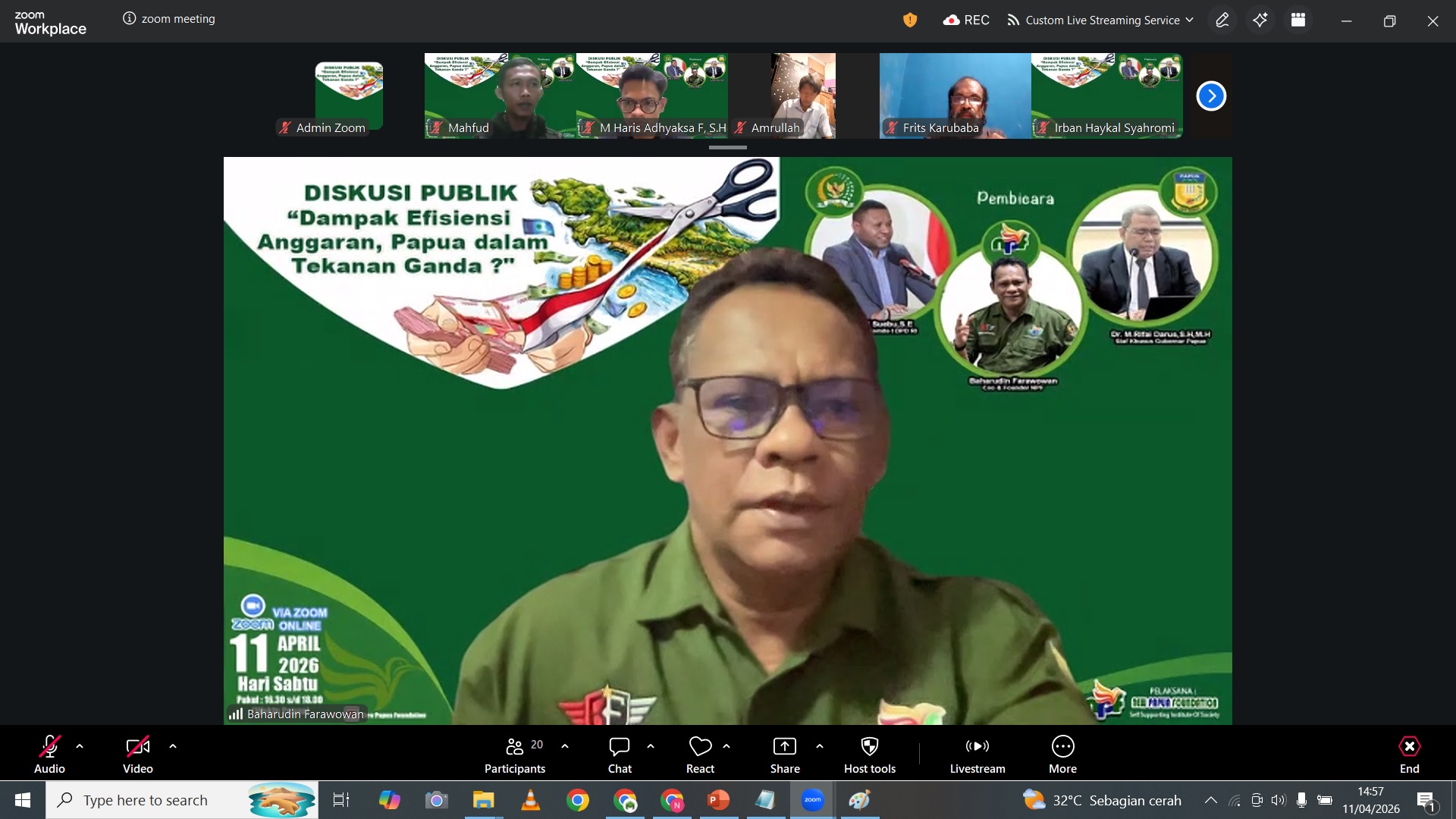 Jayapura, Malanesianews, – Isu krusial mengenai ketahanan fiskal di Bumi Cendrawasih menjadi sorotan dalam diskusi publik bertajuk “Dampak Efisiensi Anggaran, Papua Dalam Tekanan Ganda” yang diinisiasi oleh Lembaga Swadaya Masyarakat (LSM) New Papua Foundation (NPF). Melalui platform Zoom pada Sabtu (11/4/2026), webinar ini membedah risiko kebijakan pengetatan anggaran terhadap keberlanjutan pembangunan serta taraf hidup masyarakat di wilayah Papua dan sekitarnya.