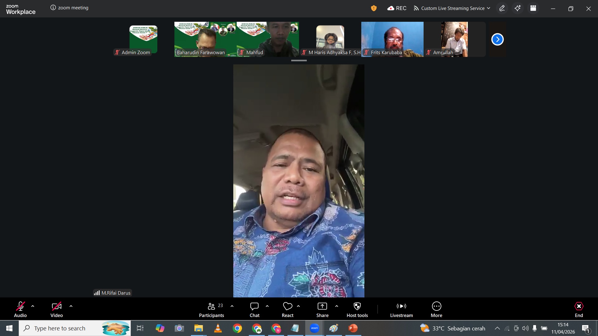 Dr. M. Rifai Darus, S.H., M.H., yang hadir memberikan paparan dalam kapasitasnya sebagai Staf Khusus Gubernur Papua, menekankan bahwa efisiensi anggaran adalah momentum untuk melakukan reformasi tata kelola. Menurutnya, pemerintah harus memastikan setiap rupiah yang dikeluarkan bekerja lebih efektif dan memberikan manfaat nyata, terutama dalam sektor pendidikan, kesehatan, dan infrastruktur dasar.